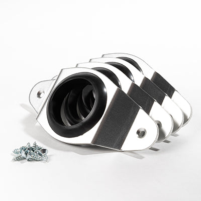 Our anodized aluminum brackets won't bend, break, rust or corrode. The rubber grommets hold all of the most common shot glass sizes.